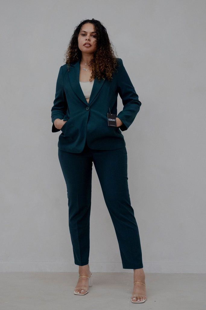 This set is made from a soft crepe fabric, a comprehensive and versatile ensemble for women in the business world. It comprises a tailored fully lined blazer with tailored pants. Offering endless outfit combinations whatever you choose to pair with. This set is ideal for formal business settings but also tons of potential when you choose to go casual with a pair of denim or loafers - making it ideal for both the serious EDKAY lady or our laid back gurus. You will be pleased with its polished, confident appearance.