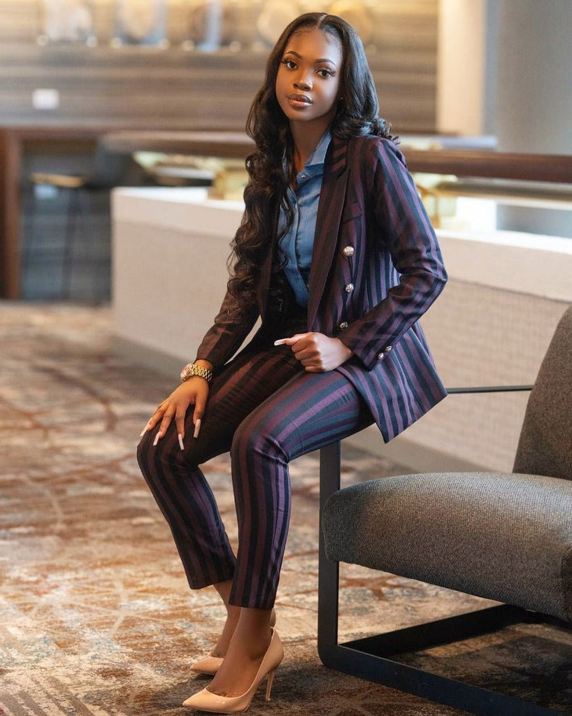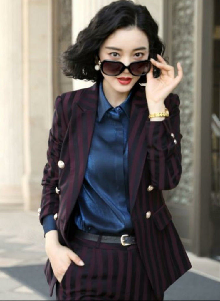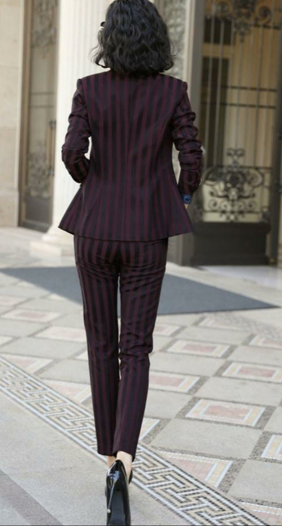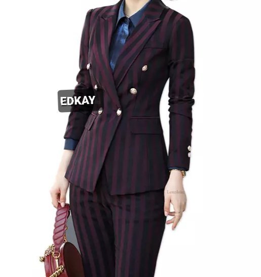 This striped double-breasted 2 piece suit set is made from high-quality worsted polyester fabric. The blazer features a double-breasted design. The set comes in 3 colors is ideal for brightening any occasion.