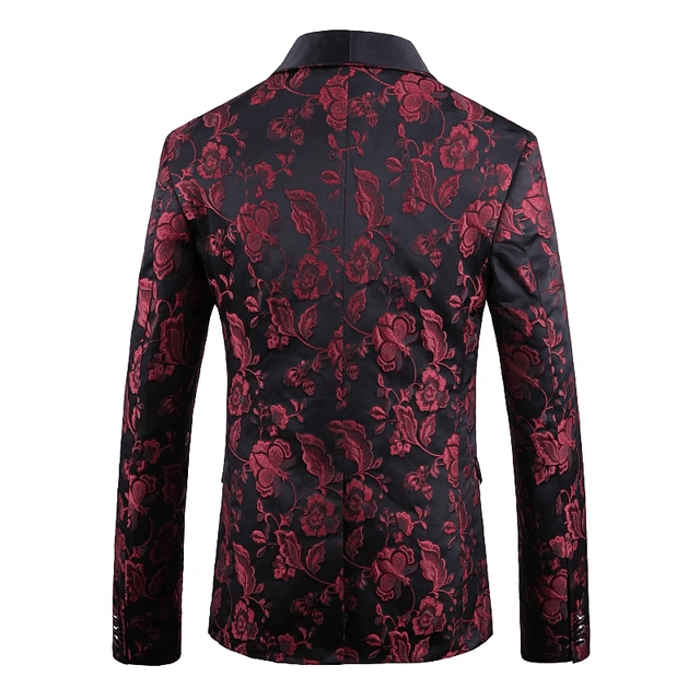 Men's red floral jacquard tuxedo blazer