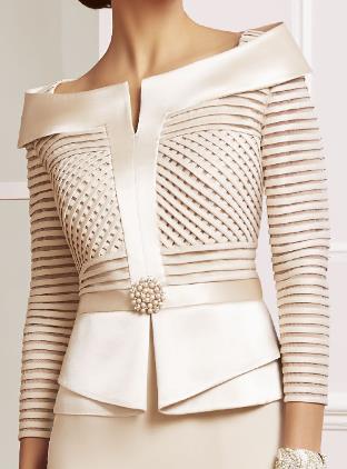 This chic and modern ensemble, combining a stylish long-sleeved delicately weaved top with a complementary pencil skirt, is designed to make any mom of the bride or groom feel graceful and refined on her special day.