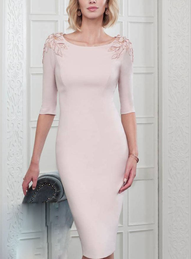 Pale pink lace embellished shoulder mother of the bride dress