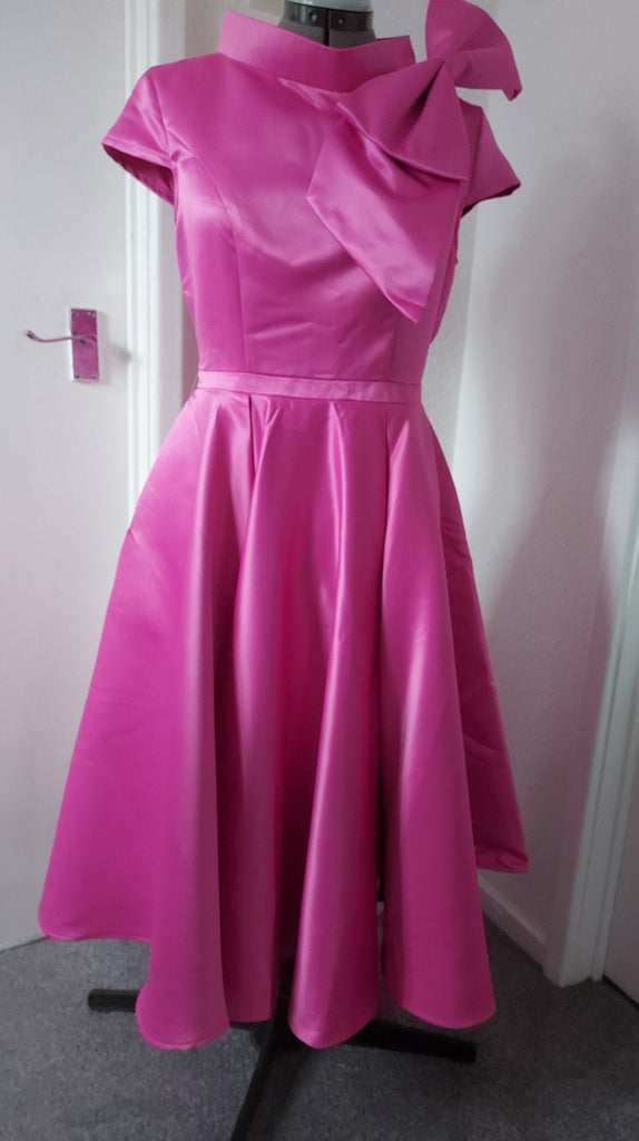 The Pink Candy Short Sleeve Wear Bow Dress is a sweet and playful attire, adorned with a charming bow accent and short sleeves, offering a delightful and stylish option for fun gatherings and daytime events.